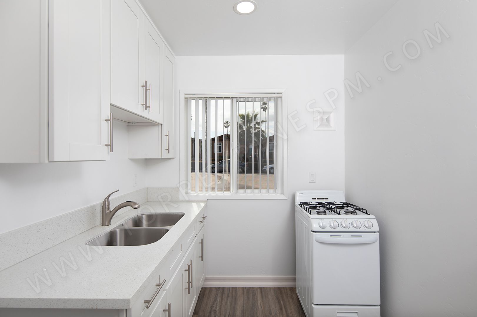 Inside this first floor studio, you’ll find hard surface flooring throughout and an upgraded kitchen with new white shaker cabinets, new quartz countertops, a gas stove, and 1 assigned parking space. The bathroom features a convenient linen closet for added storage. Residents also have access to onsite coin laundry within the community.